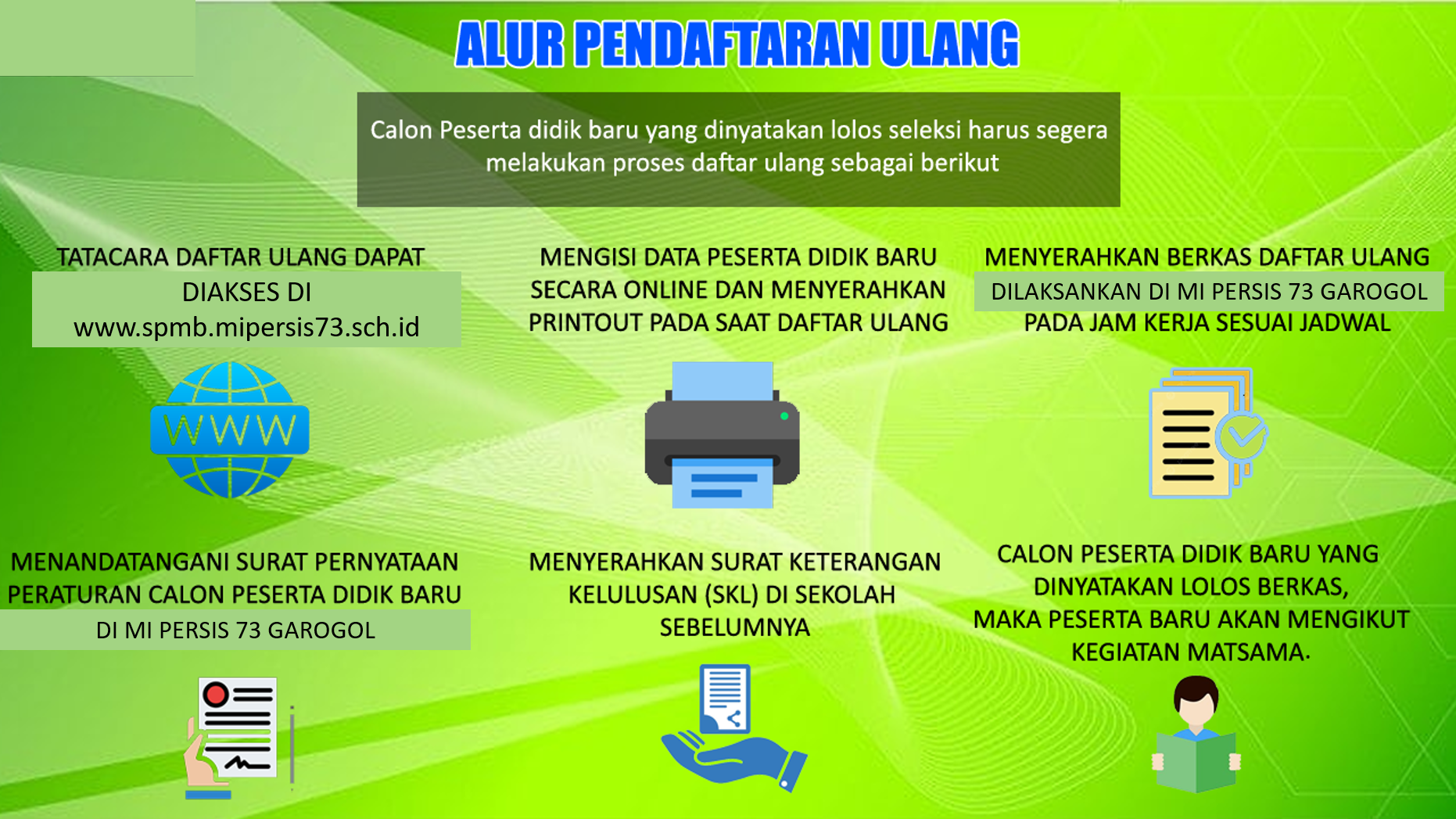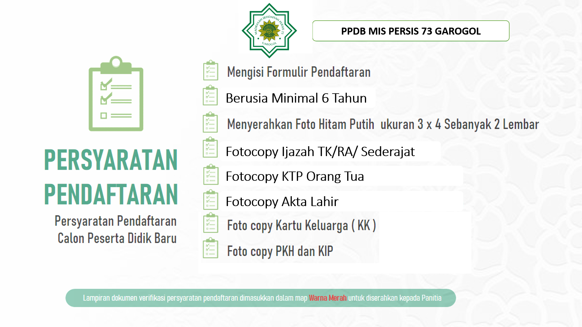 MIS PERSIS 73 GAROGOL menyediakan PPDB secara online diharapkan proses PPDB dapat berjalan cepat dan bisa dilakukan dimanapun dan kapanpun selama sesi PPDB Online dibuka. Proses pendaftaran calon siswa baru yang terhambat oleh jarak jika datang ke madrasah langsung, bisa mengakses website PPDB Online MIS PERSIS 73 GAROGOL.